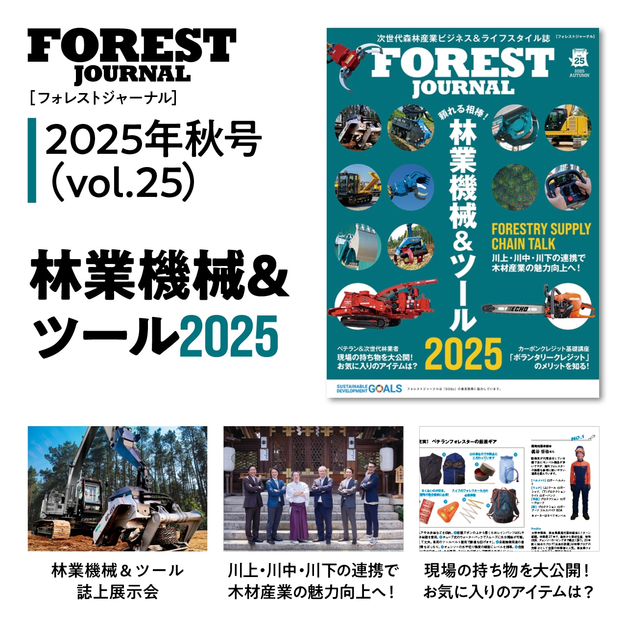 フォレストジャーナルは、次世代を担う林業経営者および若手の林業従事者の方々に向けて、最先端の林業テクノロジーや里山経営術、世界中の森林経営の成功例から、森での日常に役立つファッション&カルチャー情報まで、次世代につながる林業と森林づくりのための情報を発信するフリーマガジン。